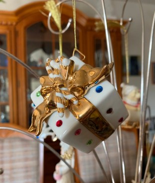 I am doing a search but I am not finding my little ornament tree having been posted. I cannot believe it. Years ago John’s sister gifted us an ornament from Lenox and it started me on my collection of ornaments from them. For many years I was getting their annual snow flake but the quality kept going down so I stopped that. I have so many and I think they are so pretty they have their own little tree that sits on a table where it is fairly safe. Safe from me or anyone knocking it over.