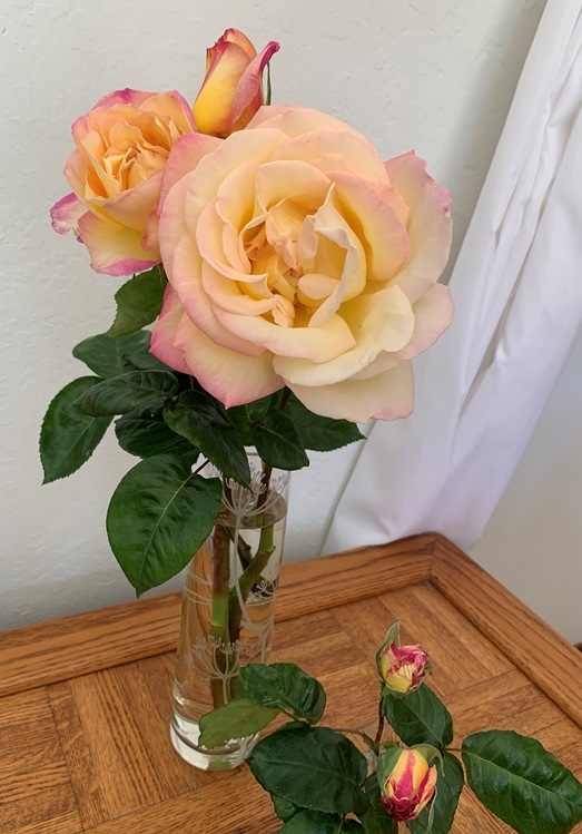 Posted in Friday Photo | Tagged: April yard roses, Friday Photo, Pretty flowers, pretty vase, tall vase | 4 Comments »