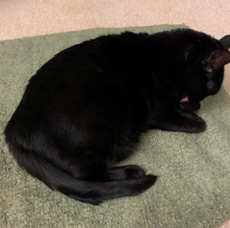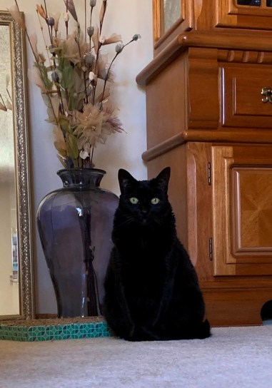 I am so fascinated by our black cat right now. She is so very black. She has not been able to sit in the sun. We haven’t had that much and we have had workers in the house so cats have to stay in their room when people are going in and out of the house so she hasn’t had much space to lie in the sun. So she is so black. Some cats “rust”, at least that is what I learned it as being called. Like a blonde whose hair gets bleached by the sun, some black cats get “rusty”. The black gets red/rusty highlights or undertones . . . I am not sure which, but she ends up looking less black. She is still black, it is just a different shade. Right now she is BLACK! It is fascinating. Her name is Teagan so clearly she is beautiful no matter what shade of black she is . . . it is just striking to me.