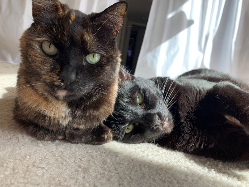 Here is a photo of Nessa and Teagan enjoying the sun, but NOT enjoying me putting the camera/phone in their faces. Cats for today’s Friday Photo.