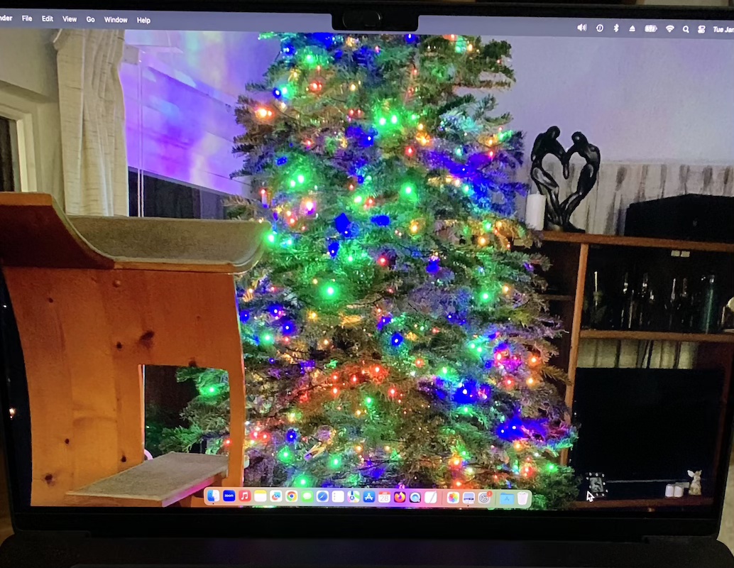 Ha! I figured it out. I figured out how to “have” our Christmas Tree year round. I just made a picture of it my wallpaper. :-). So now when I turn on my laptop I see my tree and it makes me happy. I was noticing when I saw pictures on my phone of our tree it made me happy so it occurred to me I could just make it my wallpaper so I would see it almost everyday! YAY! This photo is actually of the tree with just the lights. I may go through my many photos and find one with all the ornaments. That was one heck of a tree.