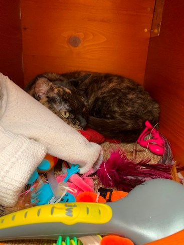Some days you just gotta hang out in the bottom of your tower with the toys.