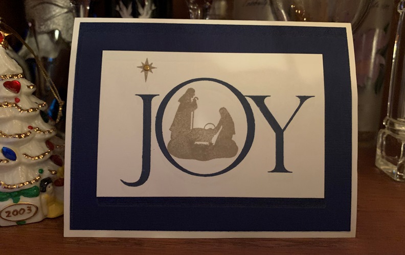 Tis the season to share the Joy and my Christmas decorations. I love handmade cards. They are so pretty and special I save them and they become part of my Christmas decorations. Here is my newest.