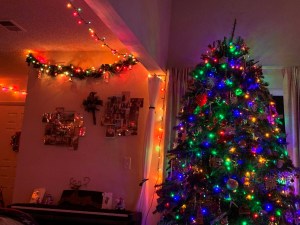 Don’t worry, I will not continue to post everyday. I just wanted to post a bunch of my Christmas decorations pictures and then I keep having little thoughts. Yesterday I had already posted my Friday Photo and I had a thought: It was dark. It had been dark a lot of December and so far a couple of days in January and I LOVE IT! As soon as I realized it was dark I ran around turning on all the Christmas lights. Now, I don’t mean DARK, I just mean, not sunny. I love that it has been not sunny so much that I have been able to turn on the lights. I think I mentioned it in another post because our Christmas tree looks like a dark blob on my Zoom classes, so the darker the day the better because then the Christmas tree lights show. So just one more picture (I think). All the lights are on in the late afternoon.