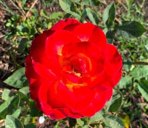 Ahhhh. A red rose. A yard rose. A little red, white, and blue. A Friday Photo of a flower. Happy August!