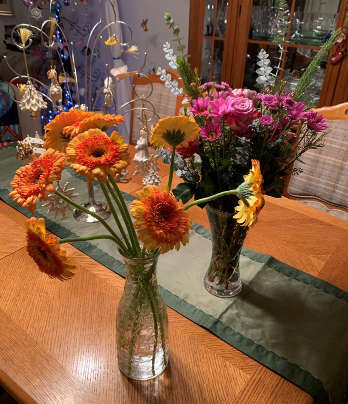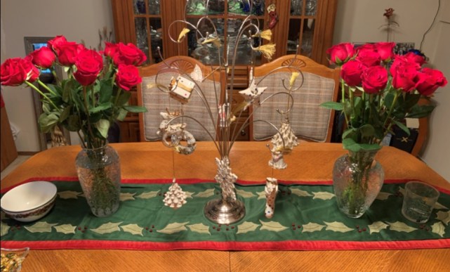 Posted in Friday Photo | Tagged: Christmas decorations, Christmas Ornaments, Flowers, Friday Photo, gift, Roses, two vases of flowers | 2 Comments »
