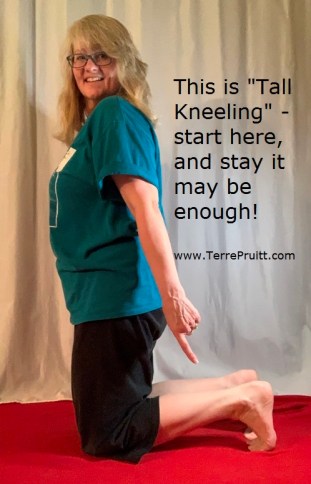 -Kneel down and bring one leg out in front, whole foot on the ground.* (Half kneeling.)